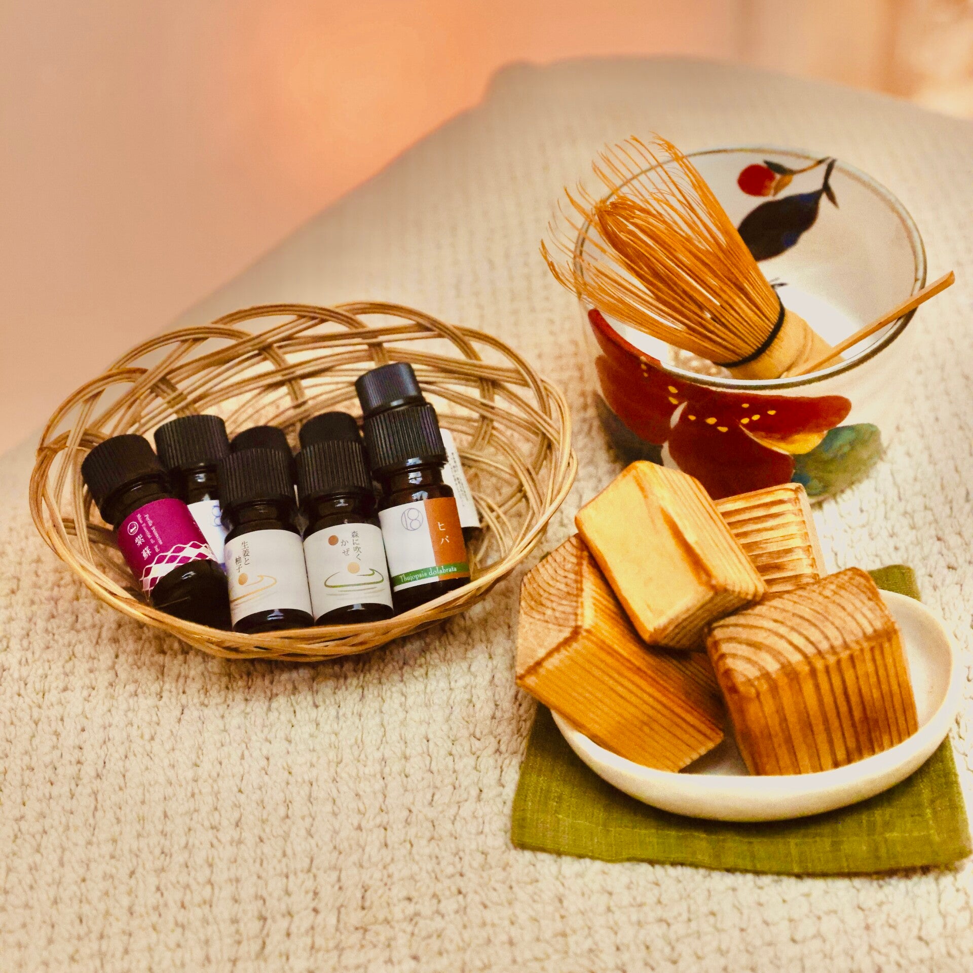 For each session, I choose the Japanese essential oils based on your condition and the atmosphere of the day. Sometimes I blend several scents to create a unique aroma just for you.